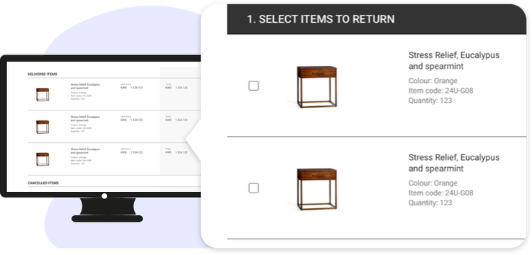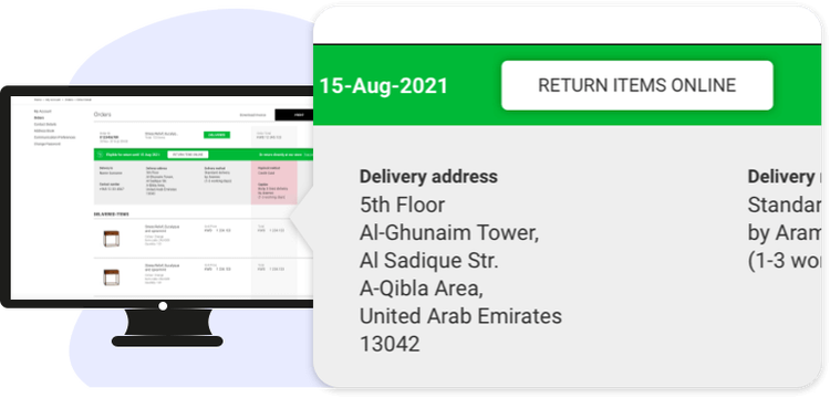 You can now return items you’ve purchased online conveniently through the click of a button. This can be done on-the-go through our website, you can select one or more items you wish to return, and they’ll be picked up and refunded.